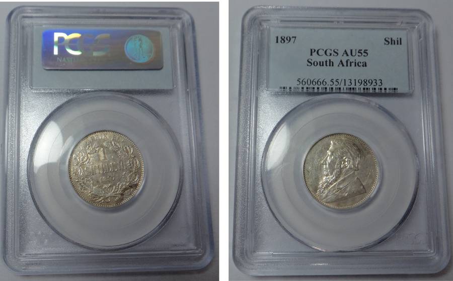 Paul Kruger ZAR Shilling 1897 PCGS AU 55 (2 available)