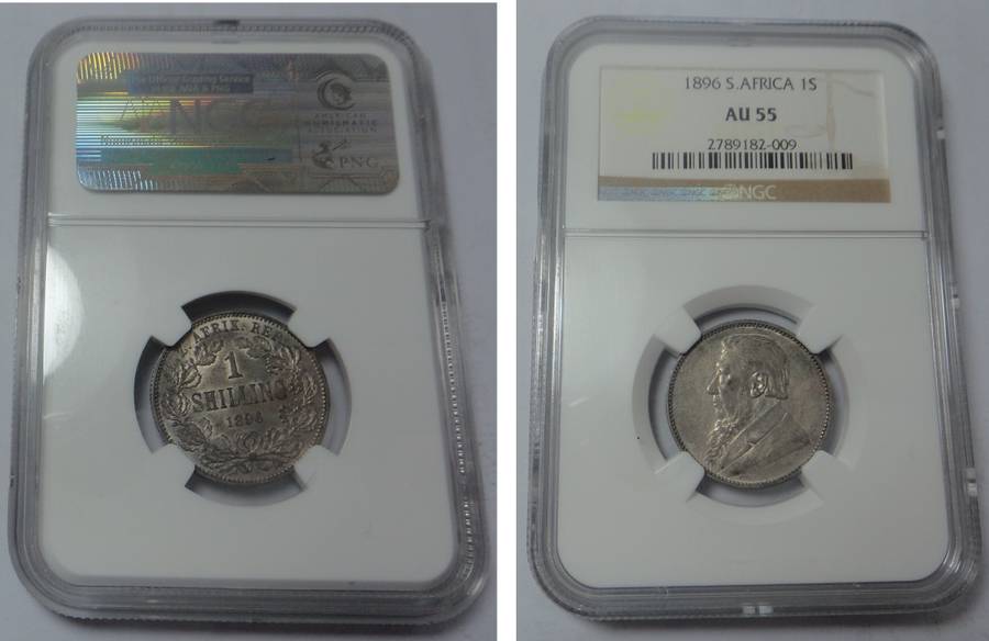 Paul Kruger ZAR: Shilling of 1896: NGC AU55