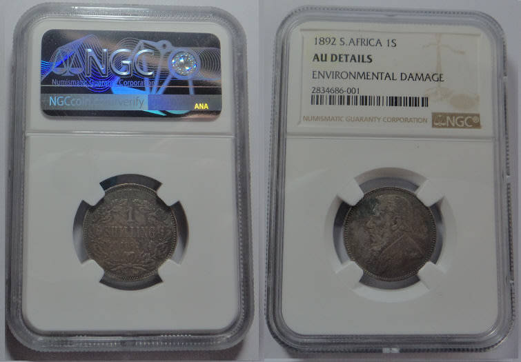 Paul Kruger ZAR, Silver Shilling (1/-) of 1892: NGC graded AU Details