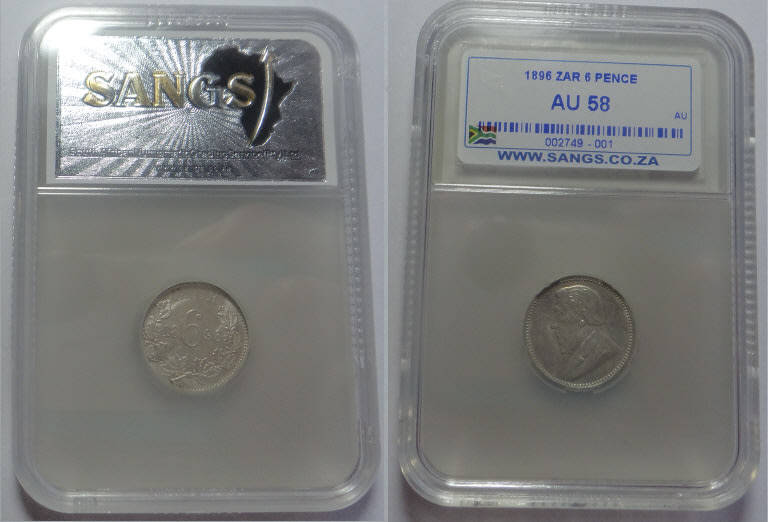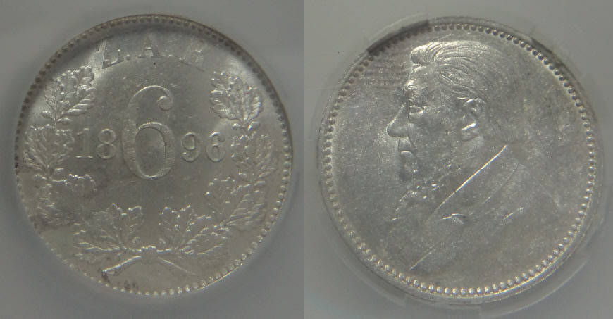 Paul Kruger ZAR: Sixpence (6d) of 1896: Sangs graded AU 58
