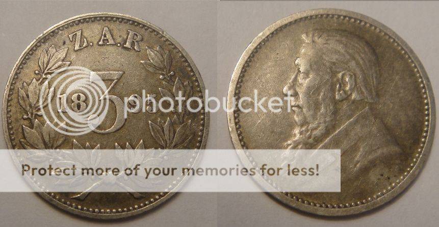 Paul Kruger ZAR : Tickey (3d) of 1895