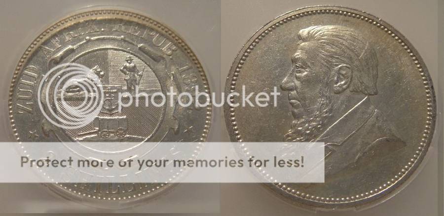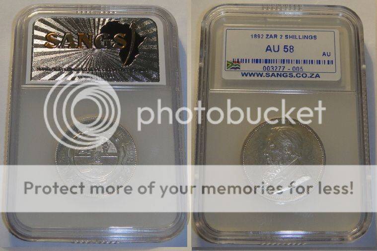 Paul Kruger ZAR Two-Shillings (2/-) of 1892 : Sangs graded AU58