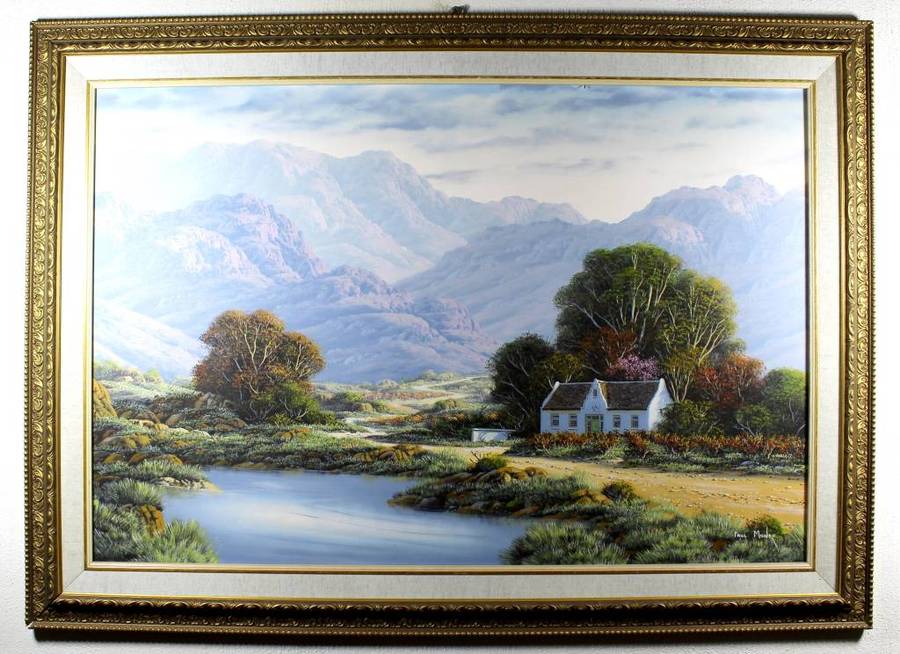 This is investment art at its finest!! This large painting is absolutely beautiful in execution and composition. The painting measures 90cm x 60cm and the frame measures 108cm x 78cm. Make the investment today, bid now!