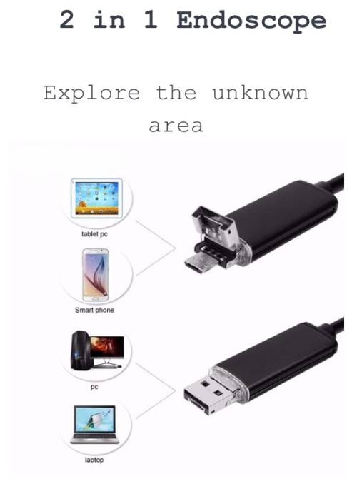 Pc & Android Smartphone Endoscope "7mm lens, waterproof, 1m cable"