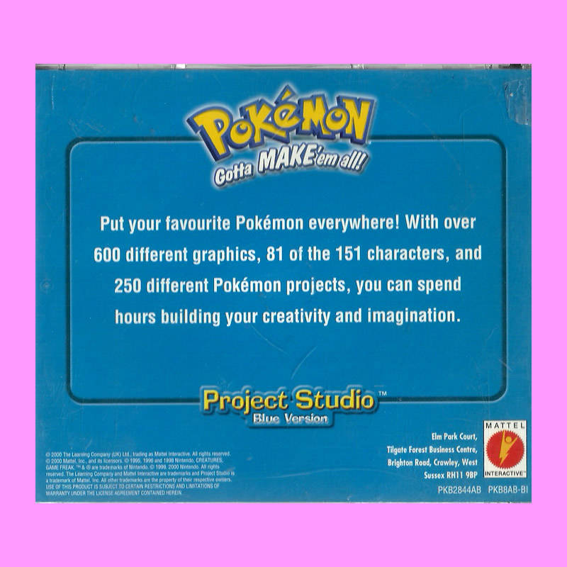 PC CD ROM POKEMON PROJECT STUDIO [BLUE VERSION] IN STOCK FOR IMMEDIATE DELIVERY ![]() ![]() CONDITION - EXCELLENT BOOKLET INCLUDED ![]() Click Here To See My Other Great Items On Offer |