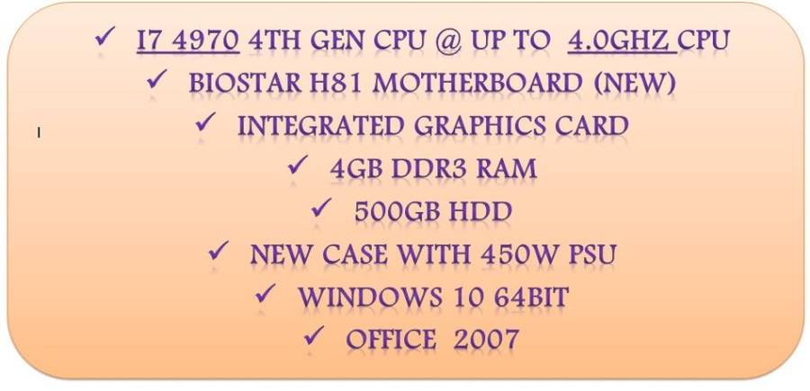 PC with:Intel Core i7-4970 3.6GHz CPU, 4GB RAM, 500GB HDD@R3299