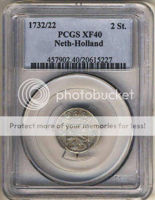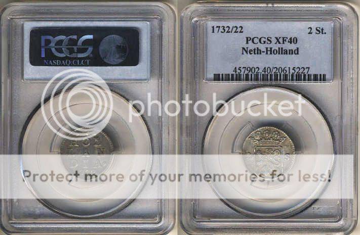 PCGS Graded XF40 : Netherlands : Holland: SILVER 2-Stuiver of 1732/22
