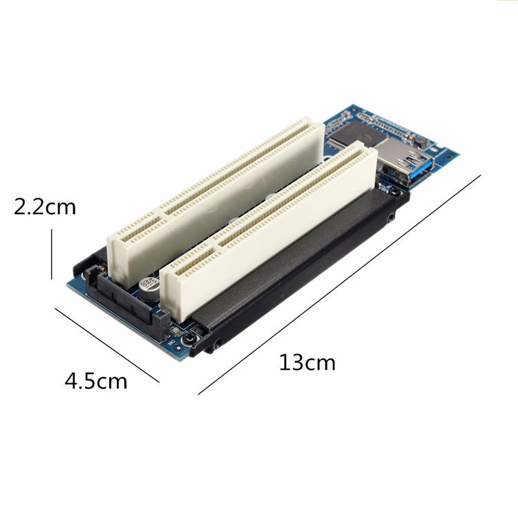 1. Product Name: PCIE To Dual PCI riser card 2. Model: PCE2PCI-P01 3. Using master: Pericom 4. Product Interface: PCI-E PCI 5. Support Systems: WIN2000 / XP / Vista / Win7 / Win8 / LINUX 6. Data transmission speed: 500 MB/s 7. USB cable length: 82cm