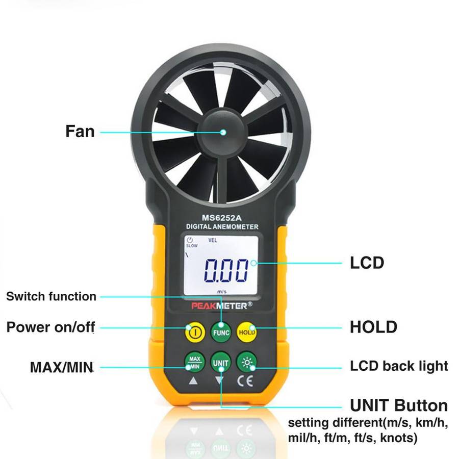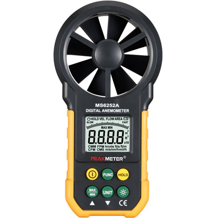 PEAKMETER MS6252A Multifunctional Digital Anemometer Air Volume Tachometer Wind Air Speed TesterThis meter is a portable, professional measuring instrument with large-screen LCD and backlight, multi-unit switching functions.