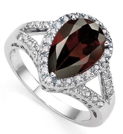 PEAR SHAPE GARNET W/32 PCS GENUINE DIAMONDS 925 STERLING SILVER RING