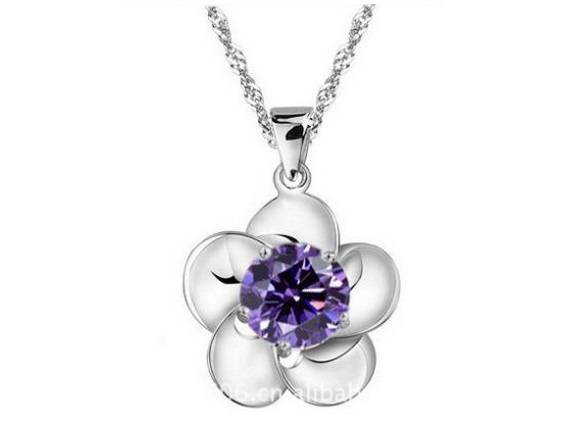 Pearl Plum Zirconia Jewelry 925 Sliver Plated Necklaces