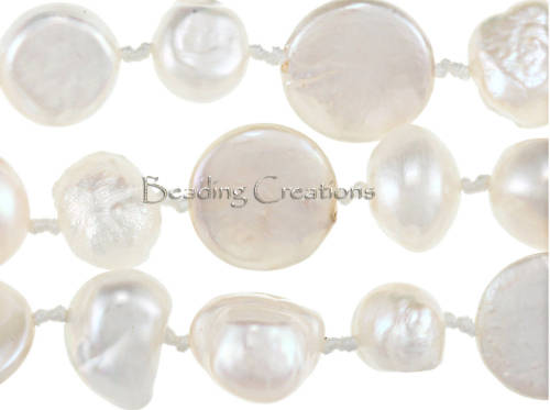 PEARLS - FRESHWATER - IRIDECENT WHITE - 5-6mm - BAROQUE & COIN CULTURED - 39cm STRAND
