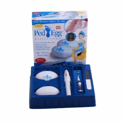 Ped Egg Professional PedicureFoot File As On TV lThe original Ped Egg has been precision engineered with 135 stainless steal micro files to gently remove calluses and dead skin to give your feet the incredible baby soft look and feel that everyone loves. lThe unique egg shape of the PedEgg not only looks great, but also is ergonomically designed to fit perfectly into the palm of your hand for easy and convenient use. lBest of all, Ped Egg has been designed to collect all the skin shavings in a convenient storage compartment allowing you to use it anywhere with no mess