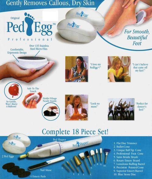 The Ped Eggs is a foot file designed to gently remove callouses, dry and cracked skin from the feet and toes, leaving them soft and smooth.