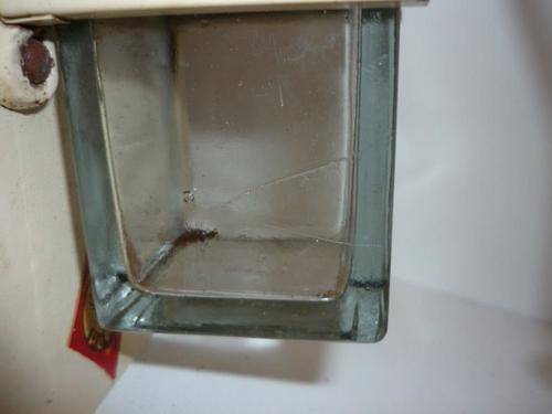 The catch cup is made of glass and has a haircrack on the one side,which has not gone through the glass as the glass is very thick( it is inside the glass-see pic.)