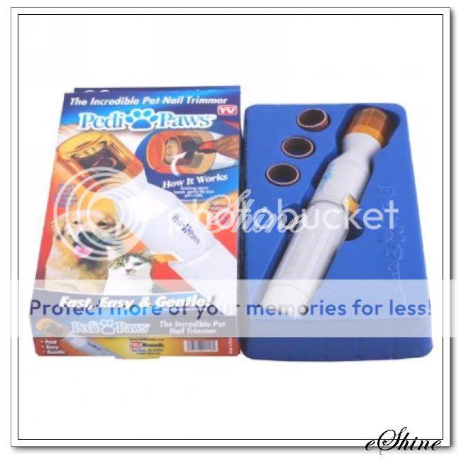 Description *PediPaws is the innovative way to eliminate the hassle of nail grooming. Traditional clippers can cause painful nail splitting and cracking. PediPaws rotating emery bands gently and safely files your pet's nails to a smooth rounded finish. Plus, the protective cap catches the filings, so there is no mess! Your pets'nail will be at a healthy length and your home will be safe from scratches and snags. Eliminate the fear and stress of nail grooming with PediPaws. Your pets will love you for it!* The fast, east and gentle way to trim your pet's nails. * It won't crack, splinter or break nails. * Requires 2xC batteries(Not included) | Pedipaws Safely Nail Trimmer for Pets(Dog/Cat/Bird) ![]() ![]() ![]() ![]() |