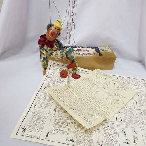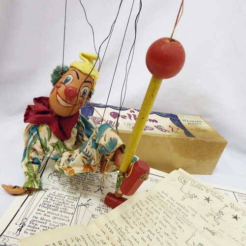 Pelham Puppet Clever Willie clown marionette with bambo pole - early version - in original box with all instructions - needs to be re-stringed - Approximate length: Strings: 52 cm, Doll: 30.5 cm