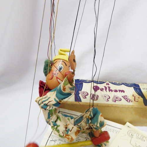 Pelham Puppet Clever Willie clown marionette with bambo pole - early version - in original box