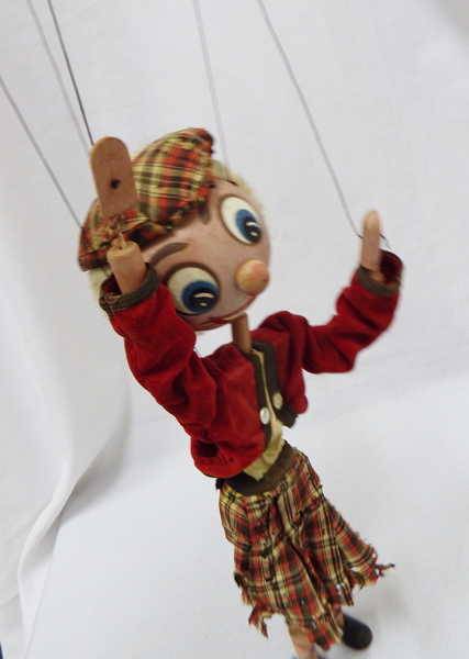 Pelham Puppets Macboozle marionette - very old version - wooden links - flat hands -Strings: 21 cm, Doll: 33 cm approximately