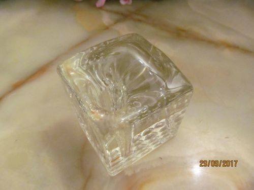 VINTAGE ORNAMENTAL ART GLASS CUBE PEN HOLDER / DESK PAPER WEIGHT