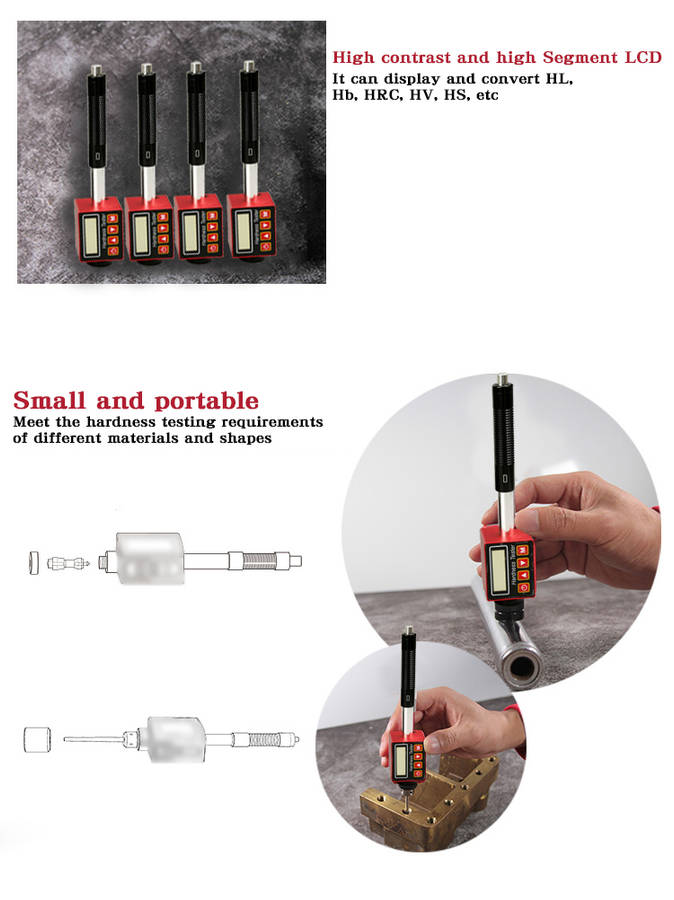 Feature: 1. Directly shows Leeb scale and Rockwell values. 2. Portable instrument, integrated design without connecting cables, improves the reliability. 3. Industry highlights, OLED display Can clear display data under direct sunlight. 4. Accurate Measurement High precision of measurement circuit guarantee value error for ± 0.5%(HLD=800),repetition rate value for 0.8% . 5. Support for multiple hardness standard HL, HV, HRA, HRC, HRB, HB, HS. Package includes: 1 x Host 1 xSupport ring 1 xNylon brush 1 xManual 1 xCharger 1 xCharging Cable 1 xABS engineering plastic box Details pictures: