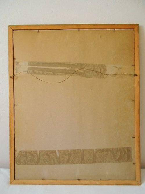 Drawing size measured without frame 50 cm x 40 cm. The drawing is clean and without any damages, the reflections are caused by the glass. The wooden frame is golden painted, the drawing could be removed and shipped in a cardboard roll.