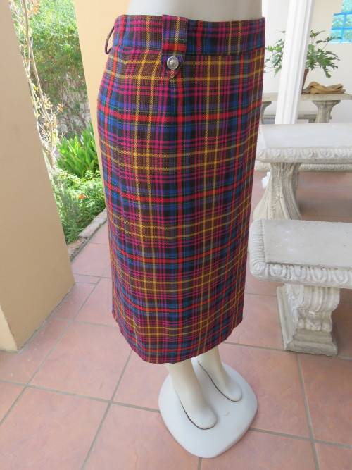 Pencil skirt in tartan check print.Size 36/12 in polycotton fabric with belt loops.Used good cond.