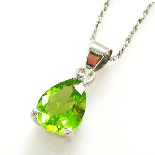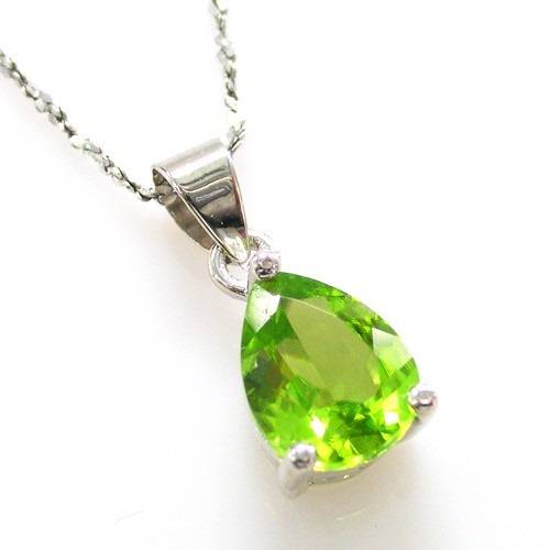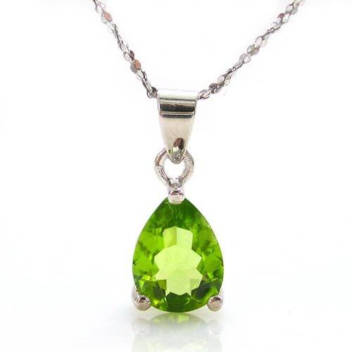 Delightful 1.3Ct Peridot Pear Pendant set in rhodium plated .925 sterling silver.