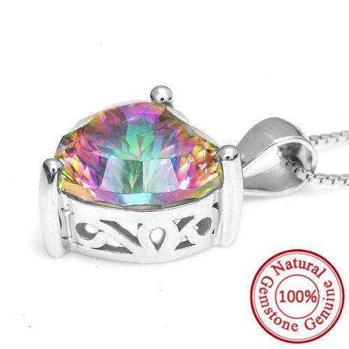 Beautiful natural Heart Rainbow Blue Mystic Topaz 3.8Ct Pendant set in platinum plated .925 sterling silver.