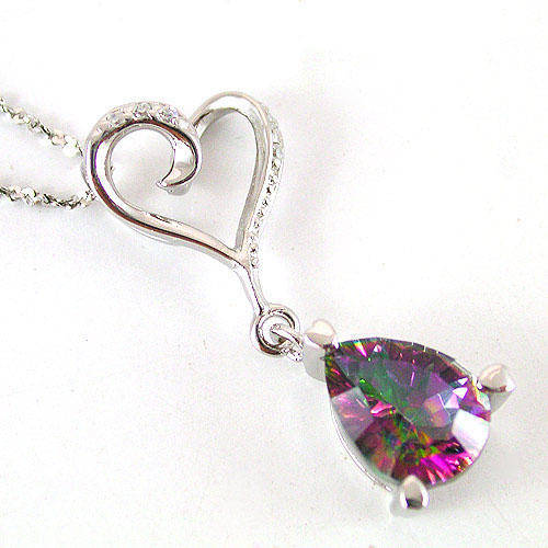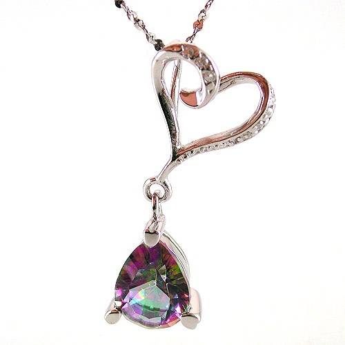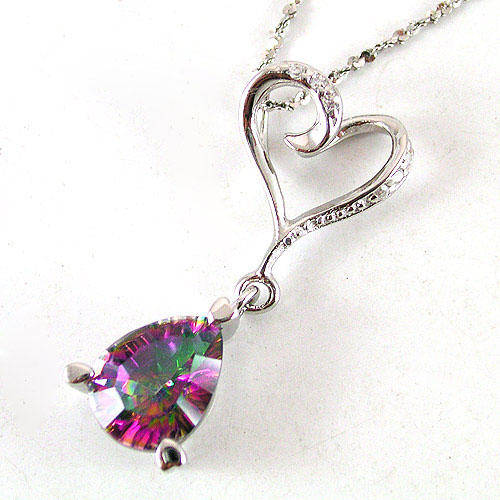 Beautiful natural Mystic Topaz 2.2Ct Pendant set in platinum plated .925 sterling silver.