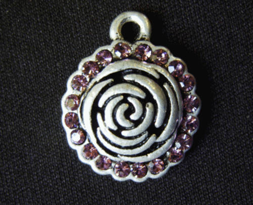 Pendant Rose With Lilac Rhinestone Inlay, 22mm x 18mm - Sold Individually.