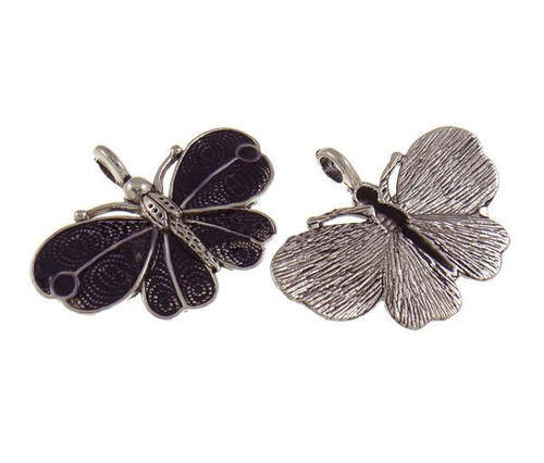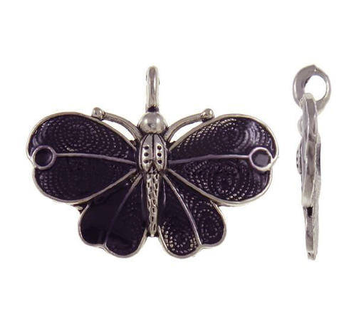PENDANTS - ANTIQUE SILVER - PURPLE ENAMEL - BUTTERFLY - 41x32x6.50mm