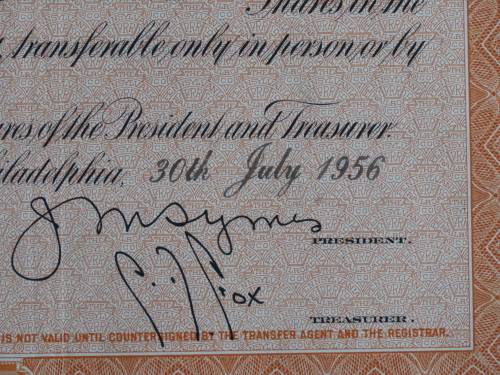 Each certificate is a piece of history about a company and its business. Some companies became major successes, while others were acquired and merged with other companies. Some companies and industries were successful until they were replaced by new technologies. Some companies have even been the center of some scandal or fraud. The color, paper, signatures, dates, stamps, cancellations, borders, pictures, vignettes, industry, stock broker, name of company, transfer agent, printer, and holder name all add to the uniqueness of the hobby.