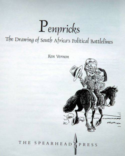 Vernon, Ken. Penpricks: the drawing of South Africa's political battlelines. Cape Town: Spearhead, 2000. ISBN: 0864864728