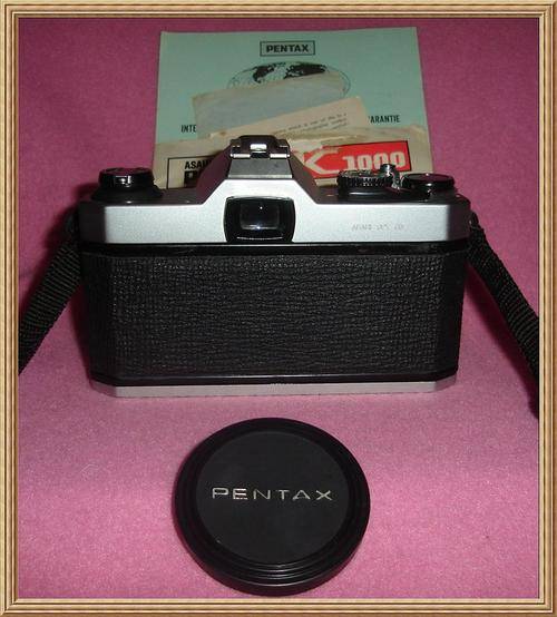 LATE ESTATE - PENTAX ASAHI K1000 SLR FILM CAMERA, with SMC PENTAX-M 1:2 50mm 7856456 ASAHI OPTICAL CO LENS & COVER, NATIONAL PE-145 FLASH, ORIGINAL MANUAL, ASAHI PENTAX STRAP, ASAHI PENTAX CASE.UNTESTED.