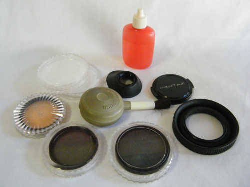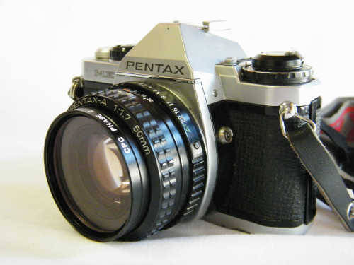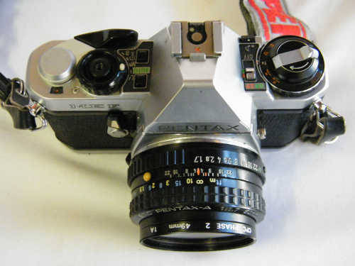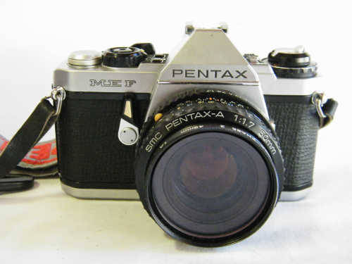 Pentax ME F camera with Tokina 80-200mm lens & other extras - shutter is stuck - as per photo