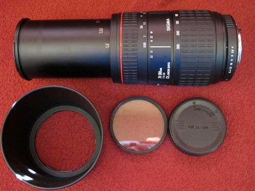 The lens is supplied with lens hood(a couple of light scuffs),rear cap and 58mm UV filter