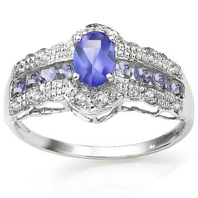 PERFECT 0.44 CT GENUINE TANZANITE & 8 PCS GENUINE TANZANITE 0.925 STERLING SILVER W/ PLATINUM RING