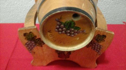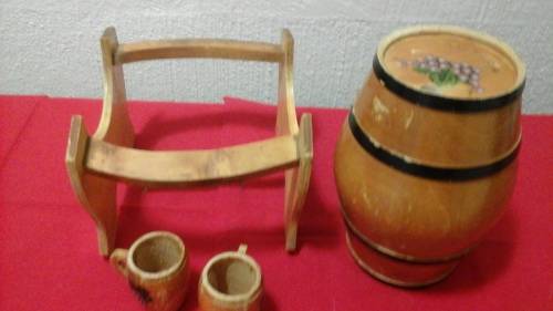 PERFECT DECORATION FOR YOUR PUB. A KEG ON STAND WITH TWO MUGS. LOVELY GRAPE PATTERN