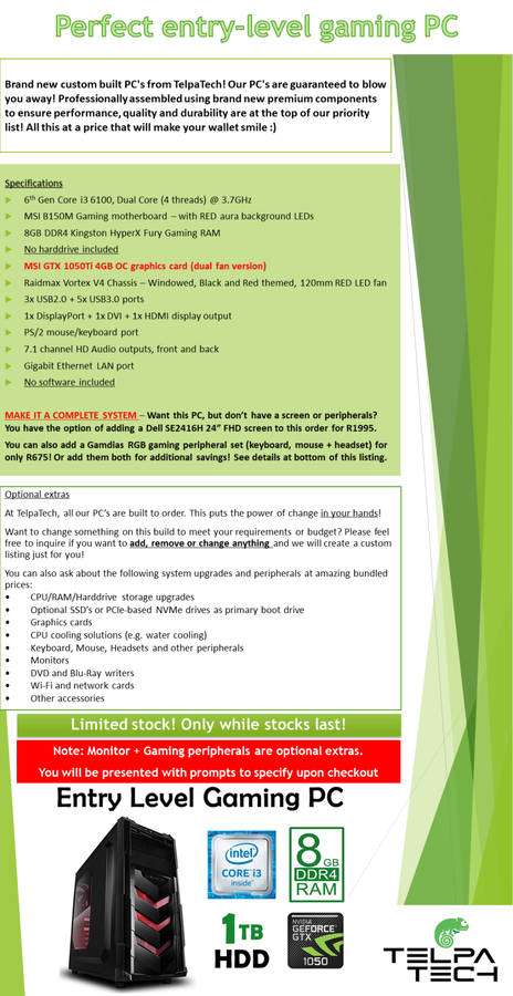 Perfect Entry-Level Gaming PC with GTX1050Ti 4GB & loads of options