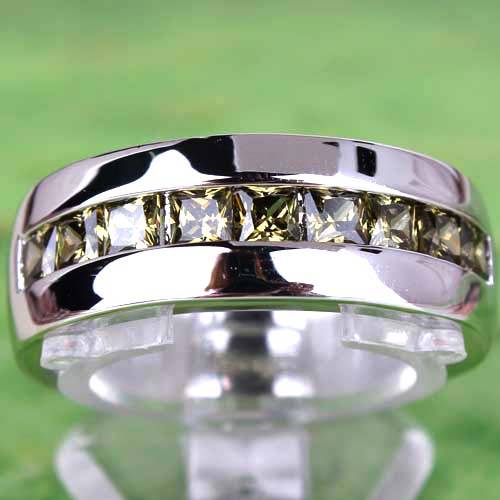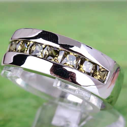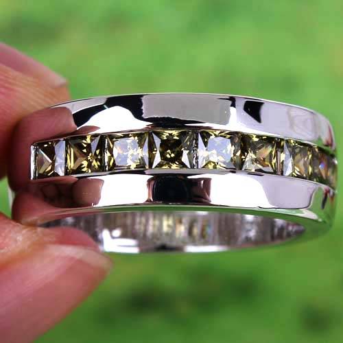 PERFECT PERIDOT CZ WEDDING/ETERNITY BAND RING IN SILVER