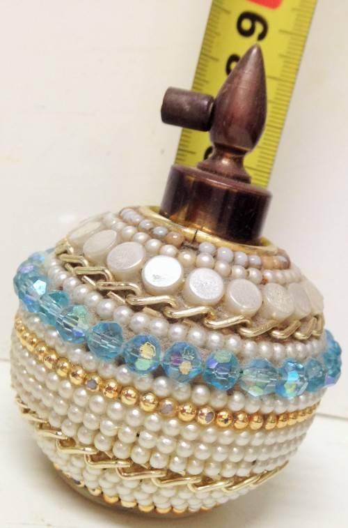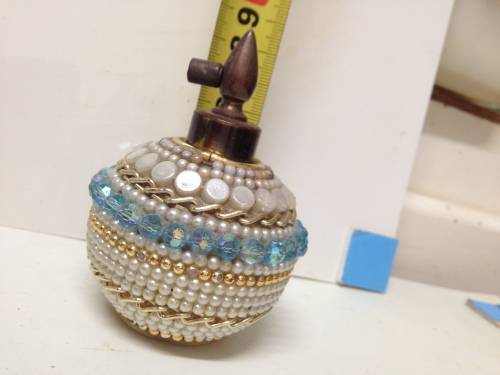 END OF 1 Antique GLASS PERFUME BOTTLE - NO PUMP -BEADED + 1 PLAIN CLEAR no lid -SOLD AS IS IN PICTURE CONDITION - LISTING