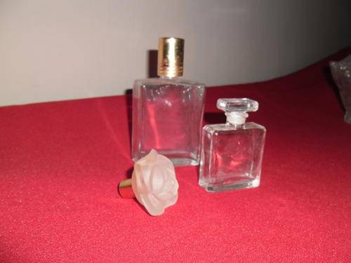 1 X Large bottle with gold cap , 1 X chanel with glass stopper and 1 X frosted rose