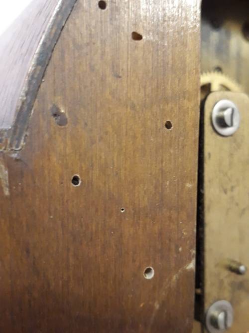 Signs of wood borer, and very dirty, glass, bezel and hinge in tact
