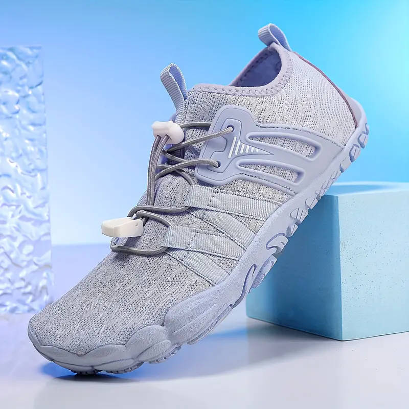 Super Comfy Great looking, Aqua / Barefoot Shoes with slip resistant sole and self lace adjust in a periwinkle colour