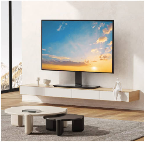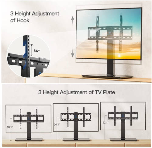 PERLESMITH TV stand makes your life easier. 9 different positions and total 8 of height movement is perfectly for the TV it was needed for. Highest level fits Large TVs and lowest level to keep it from tipping. It is also super easy to install within 15 mins without any hassle and comes with a clear instruction