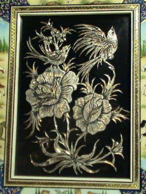This exquisitely beautiful all hand-made Persian miniature creation of two different art forms is an art work which depicts the intrinsic valuable pattern of Iranian taste and intelligence and makes a much admirable and often talked about showpiece.