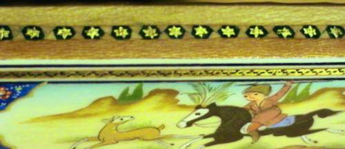 Khatam (Marquetry) Marquetry: The art of decorating the surface of wooden articles by using small triangles. As much as, the fineness of these triangles and harmony of designs and figures are considered, the higher quality of Marquetry is obtained. Marquetry is the art, in which so many different materials are used, that sometimes exceeds even more than forty. Fixing the different patterns and designs on wood, such as triangular designs, is done with special care, expertise and skill of artisans, by joining various kinds of wood, bone, shell, brass and copper wires. The Marquetry, with these special features, can be exclusively attributed to Iran. This art-craft has a long history in Iran, which goes back to sixteenth century (11th century Hijri). The artisans of Shiraz were the first who began to produce the Marquetry, through by now it is produced in Esfehan as well. At present, for producing so many items, this technique is used, mostly to produce different types and sizes of frames, cigarette and chocolate boxes, stationary sets, dining room chairs and tables.