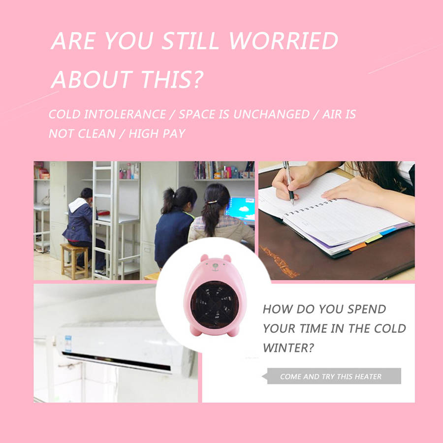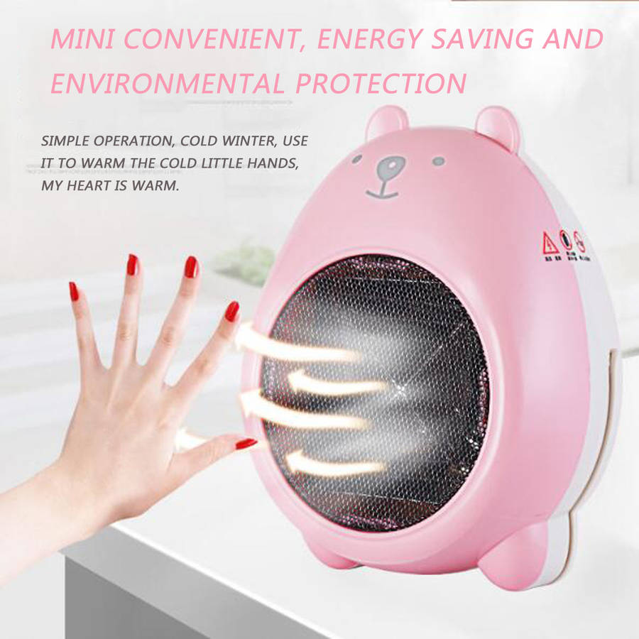 Name: Electric Heater Material: High strength ABS and heating elements Pattern: Bear Voltage: 220V, 50Hz Power: 400W Area Heated: <10 Size: Approx. 18x14cm/7.09x5.51'' Color: White,Pink,Blue,Yellow
