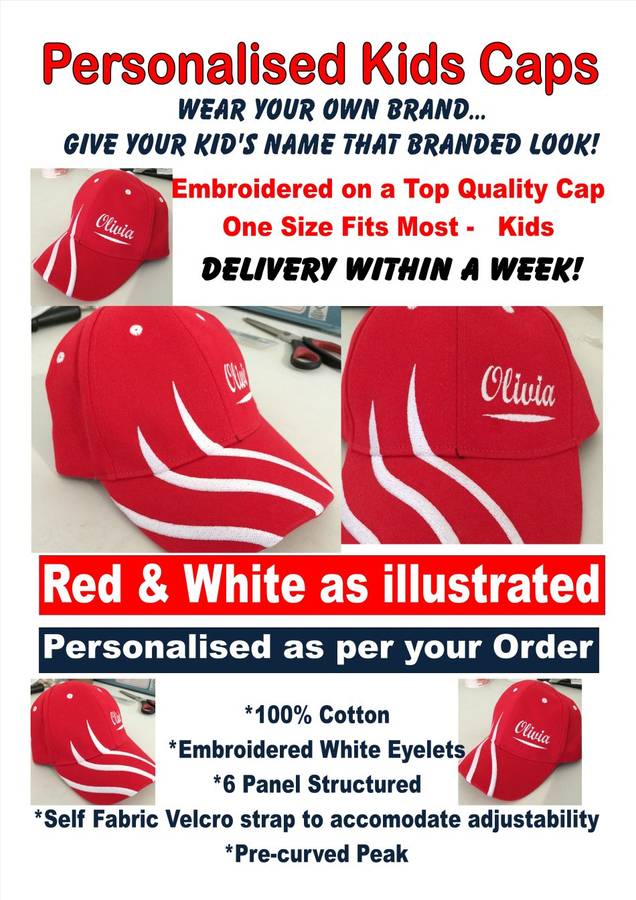 Personalised Embroidered Kids Cap!!! Brand Your own Kids Name! 10 on Auction!